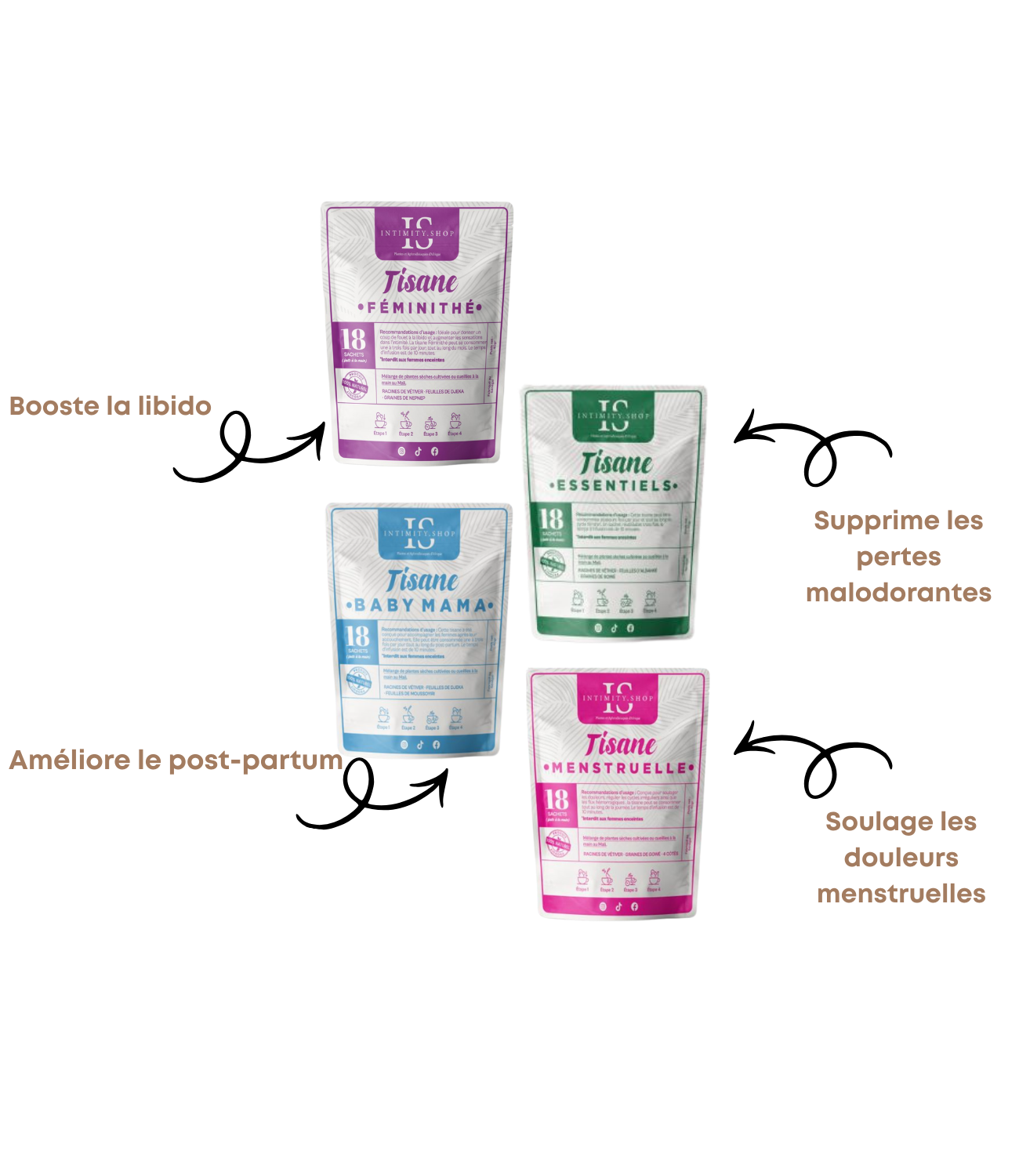 Chaque tisane répond à un besoin précis, tout en s’inscrivant dans une approche globale du bien-être intime et féminin.